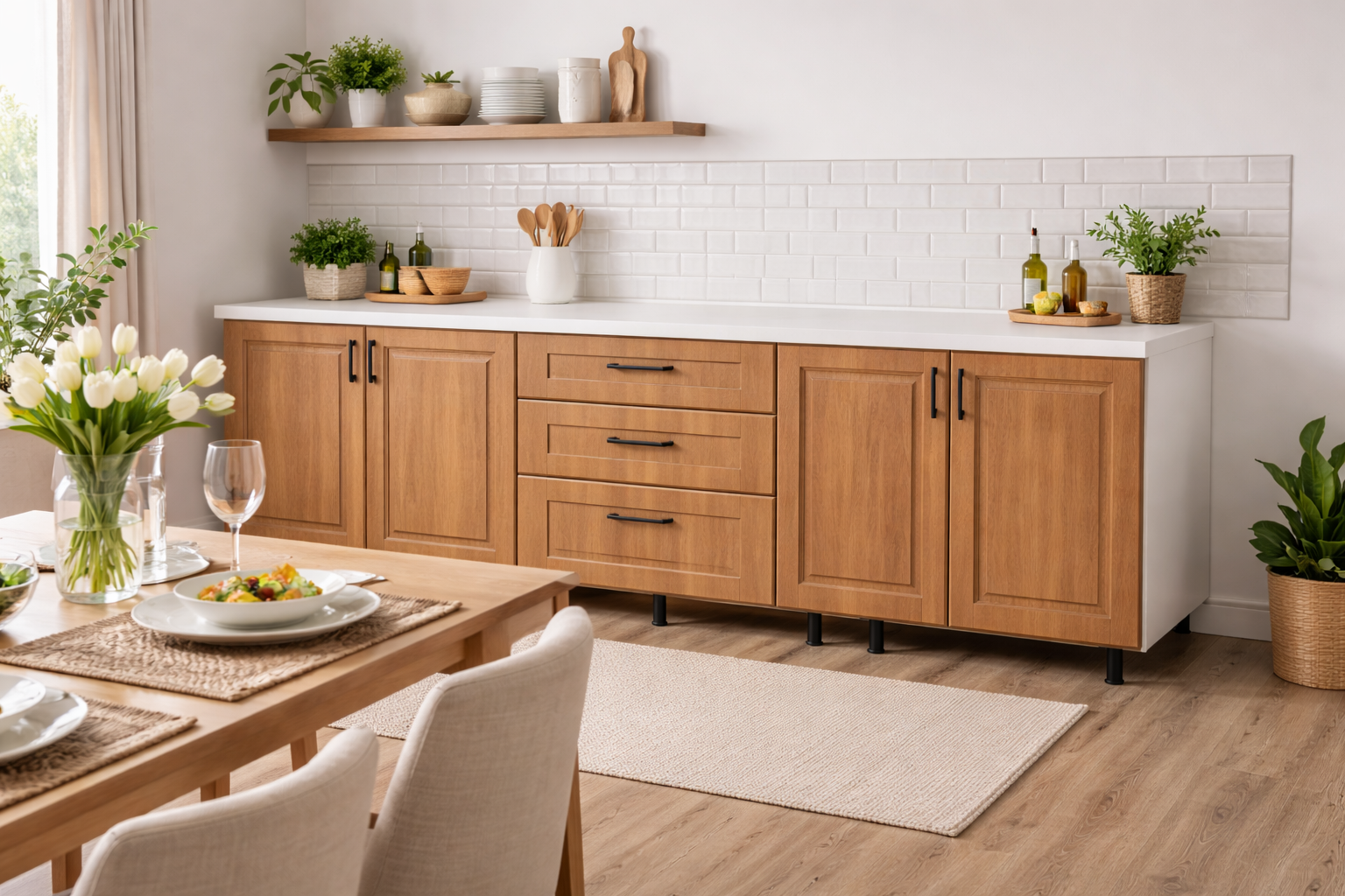 Alege un mobilier de bucătărie care îmbină stilul și funcționalitatea în cel mai elegant mod. Corpul Inferior cu Sertare și Fronturi MDF Înfoliat este soluția ideală pentru un spațiu organizat, durabil și plăcut vizual.