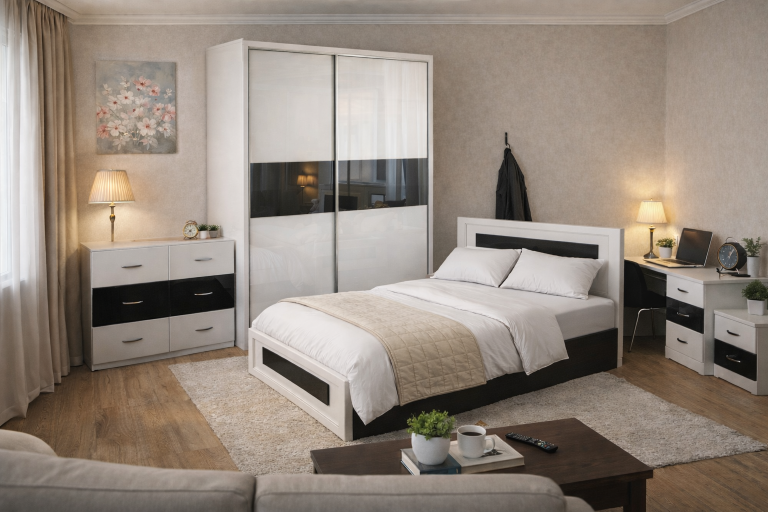 ● Front : MDF Infoliat alb – negru lucios