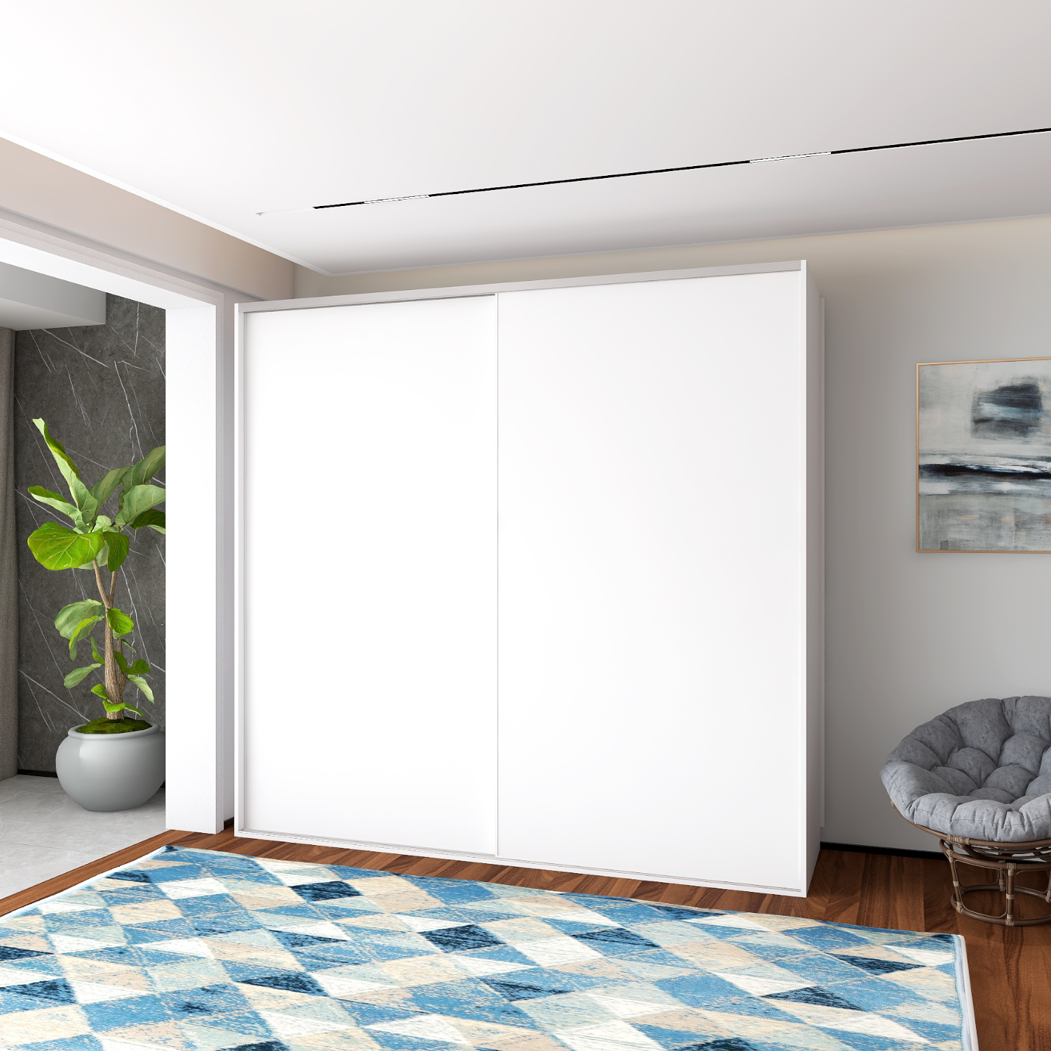 economobila Dulap Dormitor usi Culisante H200 x A60 x L120, Culoare Alb, Pal 18mm, Manere Aluminiu