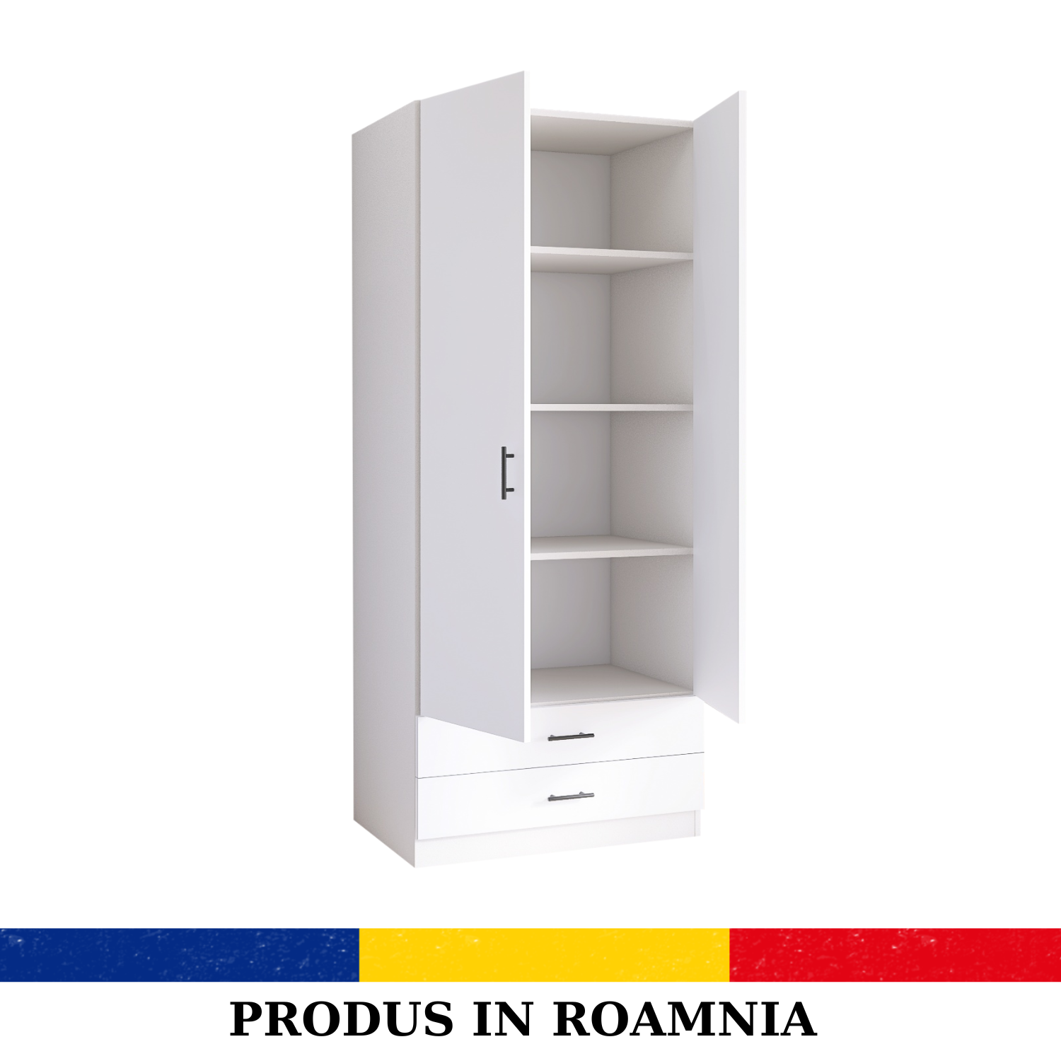 Dulap 2 usi si 2 sertare, H200 x L80 x A52cm, Material Pal 18mm, Culoare Alb