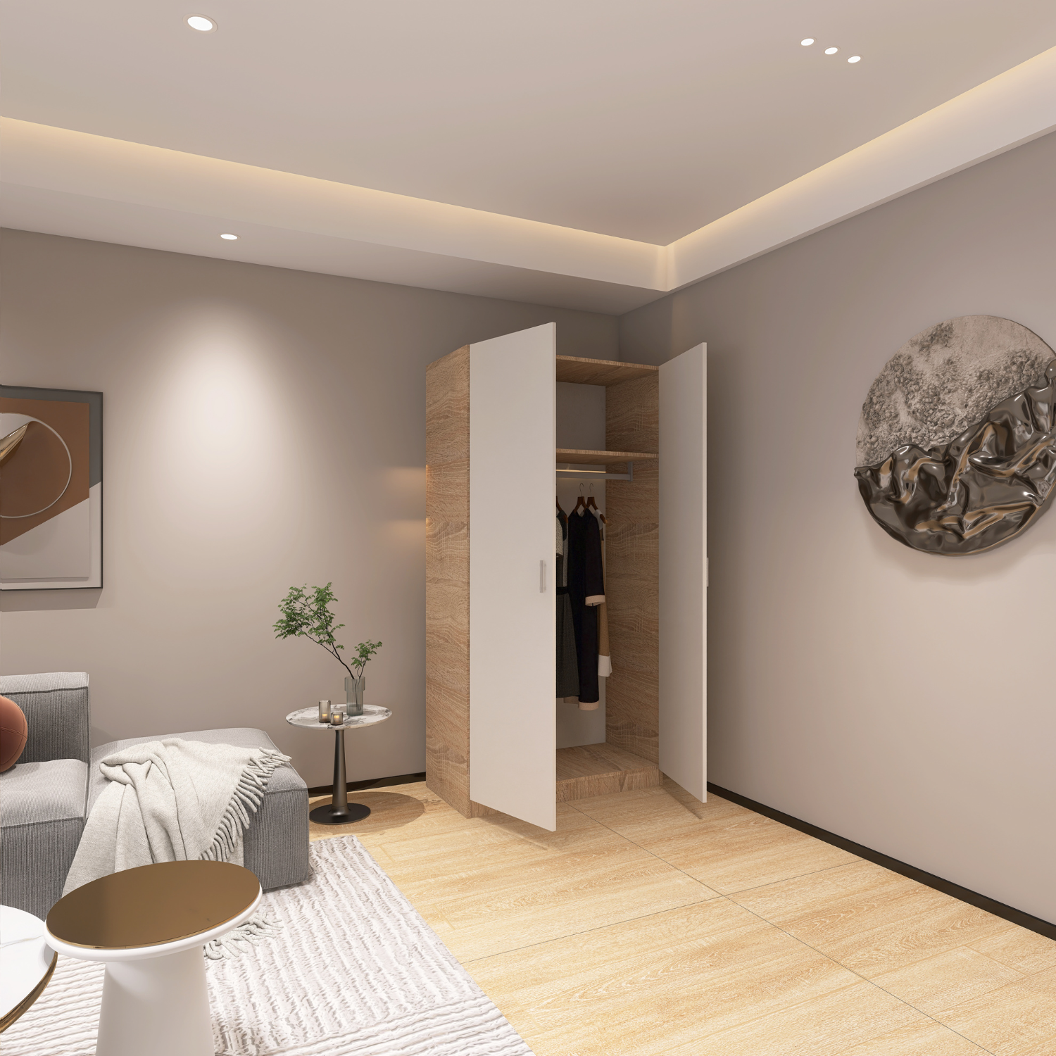 Adaugă un plus de ordine și rafinament spațiului tău cu dulapul cu 2 uși cu rafturi si bara haine, creat pentru a combina funcționalitatea inteligentă cu un design elegant și modern. Fie că îl amplasezi în dormitor, hol, birou sau dressing, acest dulap oferă spațiu generos de depozitare și o compartimentare practică, ideală pentru haine, lenjerii, cutii, documente sau alte obiecte personale.